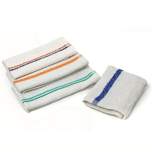 Premium Terry Bar Mops are crafted from 100% cotton, ensuring excellent absorbency. Featuring wihte with blue stripe design, these towels are not o...