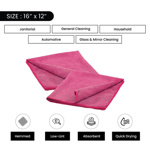 View full detailsColor Economy Microfiber Towels - Pink - 16" x 12" - 96 Counts